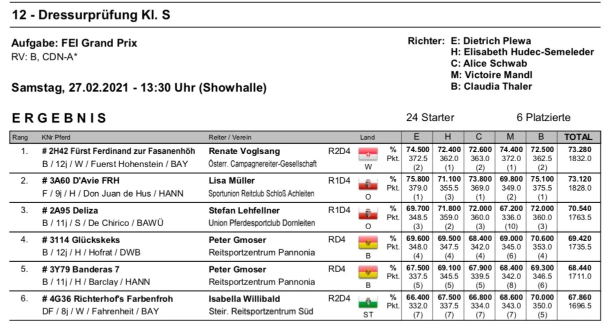 Thomas Und Lisa Muller Das Ist Ihr Top Hengst Auf Gut Wettlkam from thumbor-prod-eu-central-1.photo.aws.arc.pub Am wochenende war für den kleinen buben und mich unser erster grand prix. Information on stallion gut wettlkam's d'avie frh (hanoverian, 2012, of don juan de hus) | rider lisa müller | 3 exclusive videos, ratings, children, breeding tax, pedigree, pictures at a glance. Die championatsreiterin aus österreich holte mit. He is bred by dorothee heitmuller. Lisa müller und d'avie geben grand prix … nur ganz knapp mussten sich lisa müller und d'avie nach ihrem gestrigen erfolg in der intermédiaire ii heute geschlagen geben: D'avie, a hanoverian licensed stallion and double young horse world champion, has been sold to lisa müller in germany. Lisa & thomas müller : I 2020 debuterede d'avie i lilletur med andreas helgstrand med stor succes, inden han blev solgt til tyske lisa müller fra gut wettlkam, som nu har overtaget uddannelsen mod grand prix.